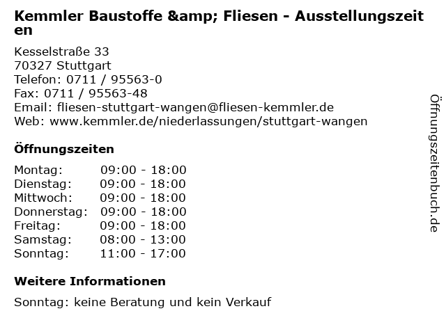 1 Kemmler Baustoffe & Fliesen - Ausstellungszeiten (Entfernung: 8,46 km) Benzstraße 19, 70736 Fellbach-Oeffingen 2 Kemmler Baustoffe & Fliesen - Ausstellungszeiten (Entfernung: 15,15 km) Lauterstraße 11, 72622 Nürtingen 6 |