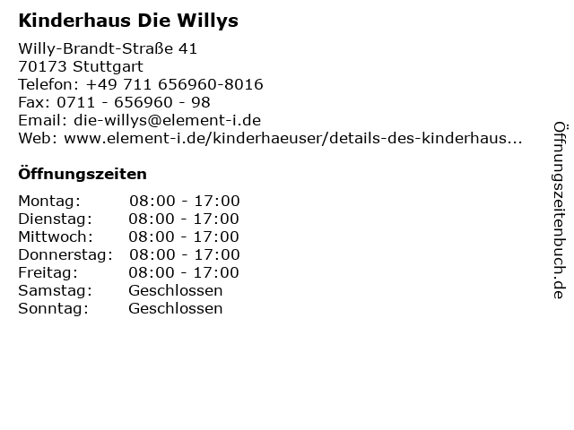 | Öffnungszeiten Kinderhaus Die Willys in Stuttgart anzeigen | |