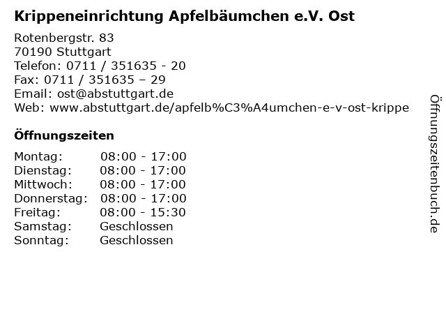 2 Gemeindebüro - Evangelische Kirchengemeinde Stuttgart - Ost (Entfernung: 0,20 km) Rotenbergstraße 53, 70190 Stuttgart 3 AOK Baden-Württemberg - KundenCenter Stuttgart Ost (Entfernung: 0,21 km) Landhausstraße 170, 70188 Stuttgart 4 Lukaskirche - Evangelische Kirchengemeinde Stuttgart-Ost (Entfernung: 0,26 km) Landhausstraße 151, 70190 Stuttgart 6 Sozialamt - Bürgerservice Leben im Alter - Ost (Entfernung: 0,30 km) Ostendstraße 77/4, 70188 Stuttgart |