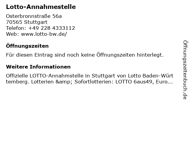 | Telefonnummer Lotto-Annahmestelle in Stuttgart (+49 228 4333112) anrufen | |