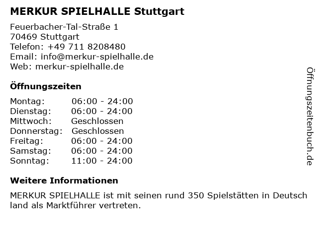 Öffnungszeiten MERKUR SPIELHALLE Stuttgart