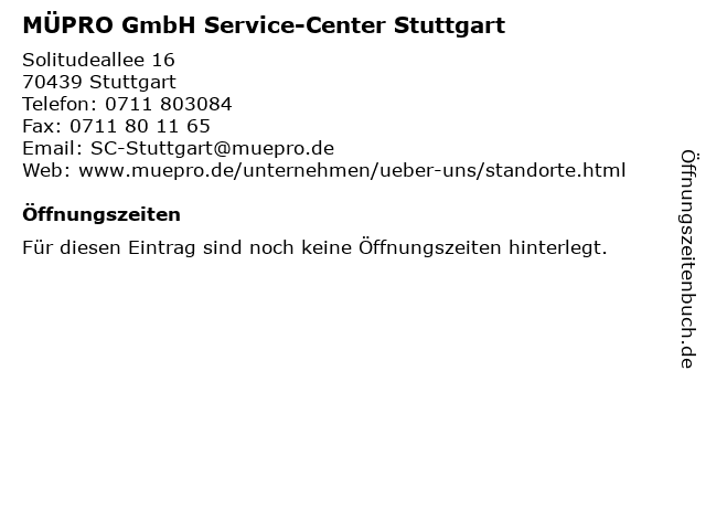 | MÜPRO GmbH Service-Center Stuttgart anrufen | |