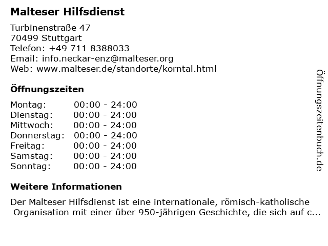 | Öffnungszeiten Malteser Hilfsdienst in Stuttgart anzeigen | |