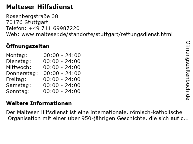 | Öffnungszeiten Malteser Hilfsdienst in Stuttgart anzeigen | |