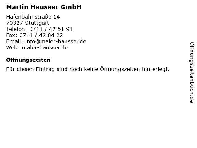 | Öffnungszeiten Martin Hausser GmbH in Stuttgart anzeigen | |