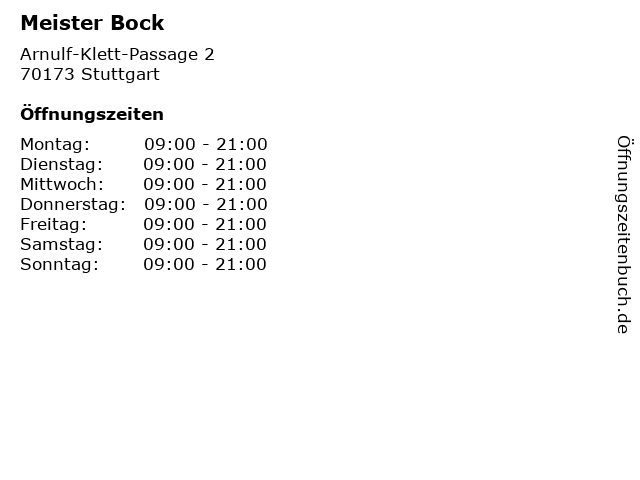 Öffnungszeiten Meister Bock in Stuttgart anzeigen