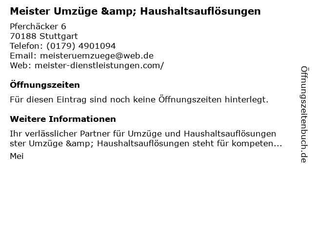 | Meister Umzüge & Haushaltsauflösungen anrufen | |