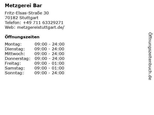 | Öffnungszeiten Metzgerei Bar in Stuttgart anzeigen | |