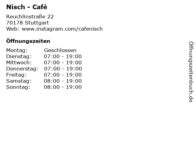 | Öffnungszeiten Nisch - Café in Stuttgart anzeigen | |