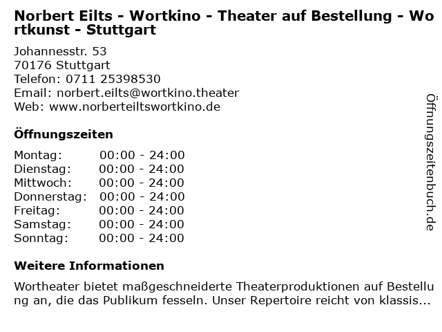 Branchen & Suchbegriffe zu Norbert Eilts - Wortkino - Theater auf Bestellung - Wortkunst - Stuttgart:auf, bestellung, eilts, norbert, theater, wortkino, wortkunst |