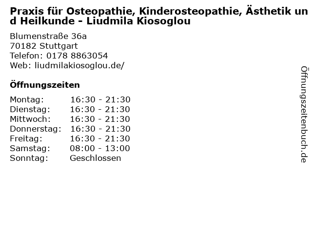 1 HEILBAR - Praxis für Physiotherapie & Osteopathie (Entfernung: 0,39 km) Hohenheimer Straße 38, 70184 Stuttgart 4 Dr. med. Eck Günther Facharzt für HNO-Heilkunde Allergologie/Stimm-und Spachstörungen (Entfernung: 1,07 km) Marienstr. 5, 70178 Stuttgart 5 Dr. med. Uwe Maisa - Facharzt für HNO-Heilkunde (Entfernung: 1,15 km) Sophienstr. 39, 70178 Stuttgart 6 |