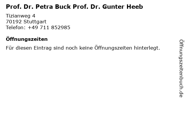 | Prof. Dr. Petra Buck Prof. Dr. Gunter Heeb anrufen | |
