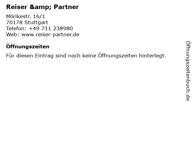 | Öffnungszeiten Reiser & Partner in Stuttgart anzeigen | |