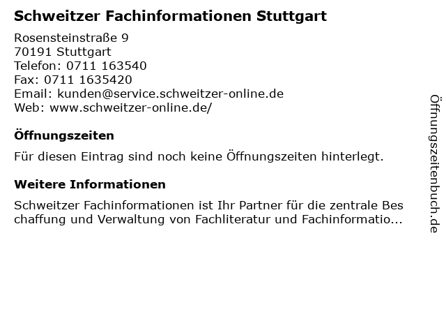 | Schweitzer Fachinformationen Stuttgart anrufen | |