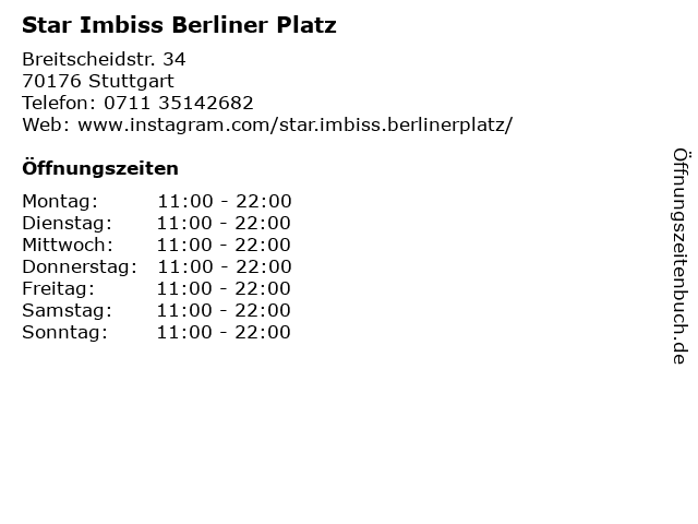 | Öffnungszeiten Star Imbiss Berliner Platz in Stuttgart anzeigen | |