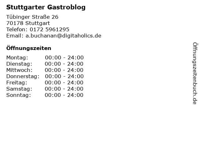 | Öffnungszeiten Stuttgarter Gastroblog in Stuttgart anzeigen | |