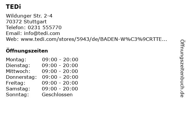 | Öffnungszeiten TEDi in Stuttgart anzeigen | |