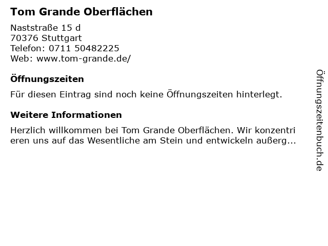 Hinweis: Herzlich willkommen bei Tom Grande Oberflächen. Wir konzentrieren uns auf das Wesentliche am Stein und entwickeln außergewöhnliche Kompositionen für Räume und Designs. Ob im Innen- oder Außenbereich – wir bieten Lösungen für jedes Preissegment. Unsere exklusiven Materialien sind einzigartig und verleihen Ihren Gestaltungsideen eine hochwertige, ausdrucksstarke Wirkung.