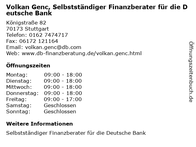 Branchen & Suchbegriffe zu Volkan Genc, Selbstständiger Finanzberater für die Deutsche Bank:bank, deutsche, finanzberater, genc, selbstständiger, volkan |