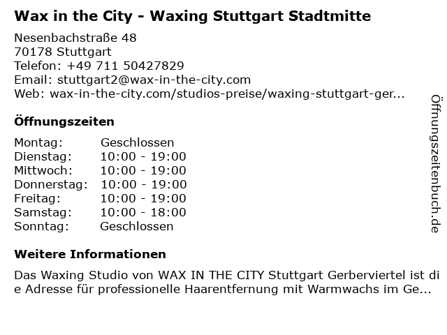 Branchen & Suchbegriffe zu Wax in the City - Waxing Stuttgart Stadtmitte:city, haarentfernung, stadtmitte, the, wax, waxing, waxing ohne termin, waxing studio, waxing stuttgart |