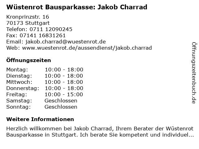 Branchen & Suchbegriffe zu Wüstenrot Bausparkasse: Jakob Charrad:bausparkasse, charrad, jakob, wüstenrot |
