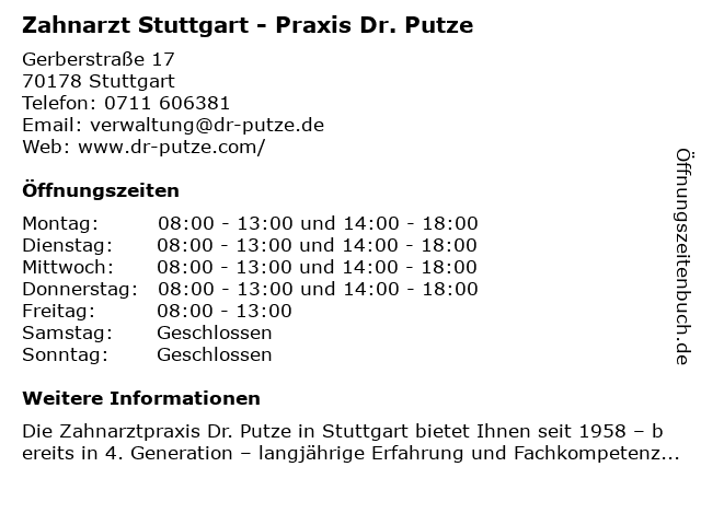 Branchen & Suchbegriffe zu Zahnarzt Stuttgart - Praxis Dr. Putze:dr., endodontie, kosmetische zahnbehandlung, parodontologie, parodontologie für zahnimplantate, praxis, putze, zahnarzt, zahnersatz |