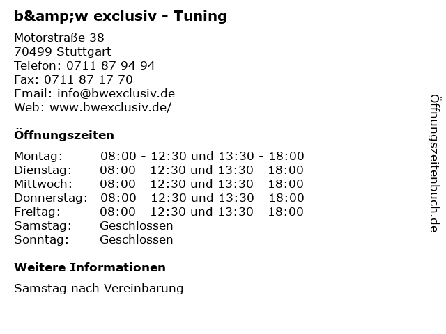 | Öffnungszeiten b&w exclusiv - Tuning in Stuttgart anzeigen | |