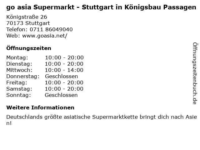 Branchen & Suchbegriffe zu go asia Supermarkt - Stuttgart in Königsbau Passagen:asia, go, königsbau, passagen, supermarkt, supermärkte |