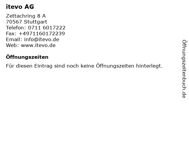 | Öffnungszeiten itevo AG in Stuttgart anzeigen | |