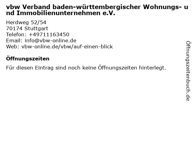 | vbw Verband baden-württembergischer Wohnungs- und Immobilienunternehmen e.V. anrufen | |
