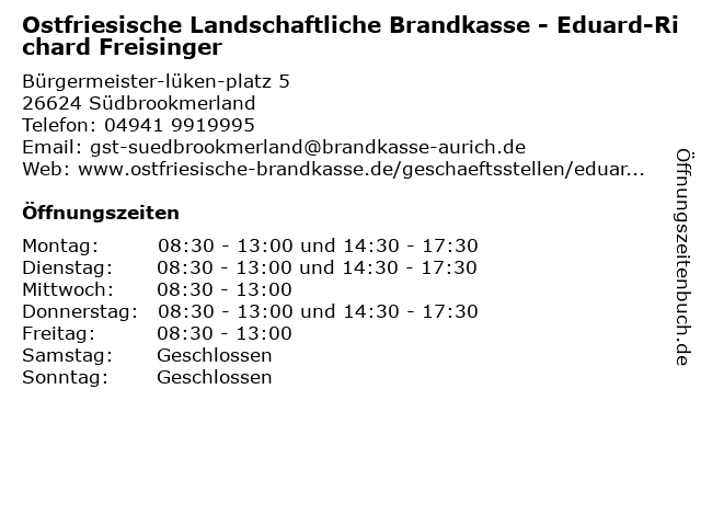 Branchen & Suchbegriffe zu Ostfriesische Landschaftliche Brandkasse - Eduard-Richard Freisinger:brandkasse, eduard, freisinger, landschaftliche, ostfriesische, richard |
