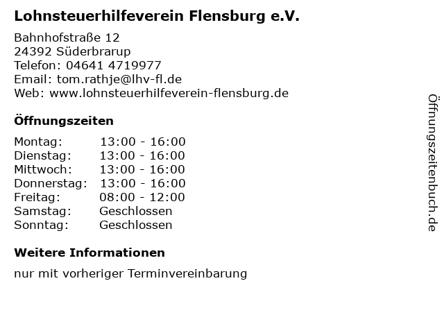 Branchen & Suchbegriffe zu Lohnsteuerhilfeverein Flensburg e.V.:beratung, e.v., hilfe, lohn, lohnsteuer, lohnsteuerhilfeverein, steuer, verein |