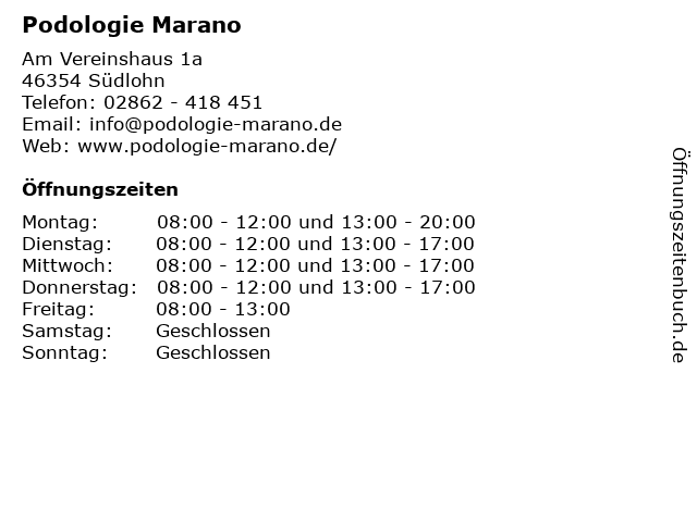 | Öffnungszeiten Podologie Marano in Südlohn anzeigen | |