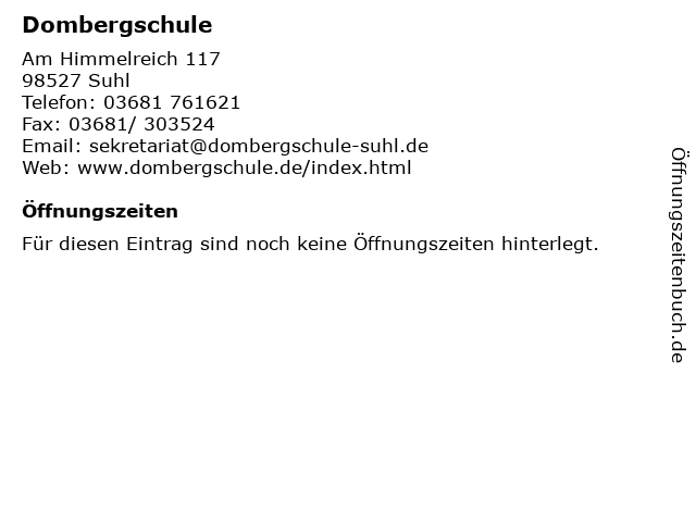 | Öffnungszeiten Dombergschule in Suhl anzeigen | |