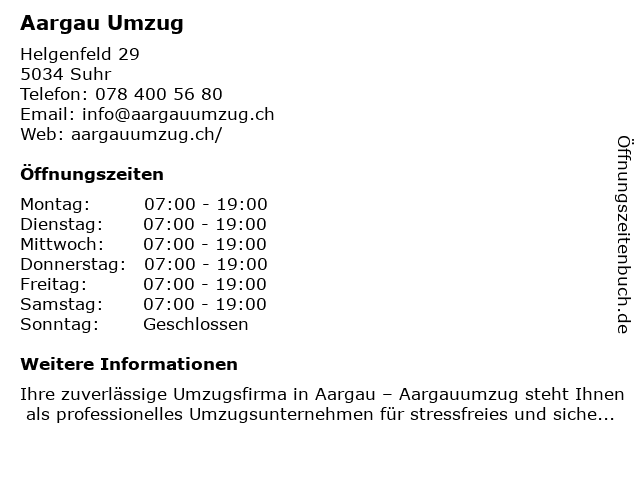 | Öffnungszeiten Aargau Umzug in Suhr anzeigen | |