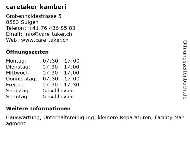 | Öffnungszeiten caretaker kamberi in Sulgen anzeigen | |