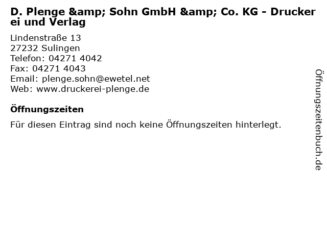 | D. Plenge & Sohn GmbH & Co. KG - Druckerei und Verlag anrufen | |