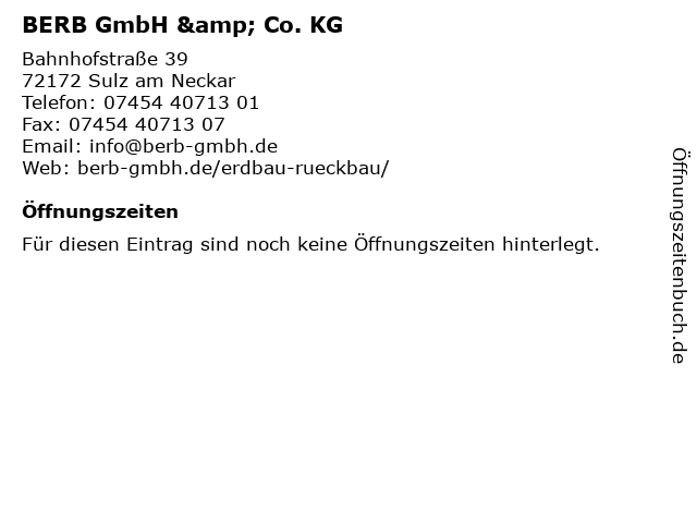 | Öffnungszeiten BERB GmbH & Co. KG in Sulz am Neckar anzeigen | |