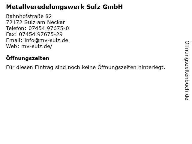 | Metallveredelungswerk Sulz GmbH anrufen | |