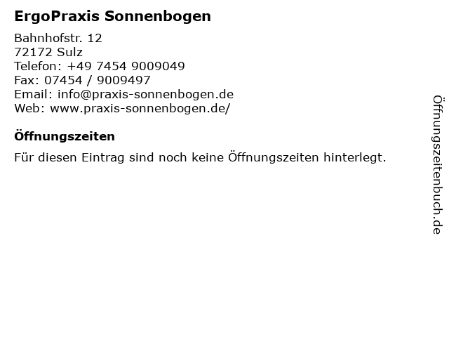 | Öffnungszeiten ErgoPraxis Sonnenbogen in Sulz anzeigen | |