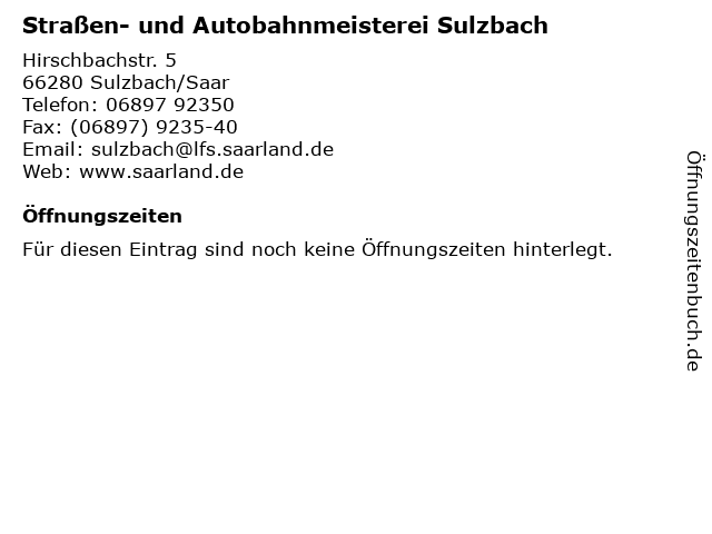 | Straßen- und Autobahnmeisterei Sulzbach anrufen | |