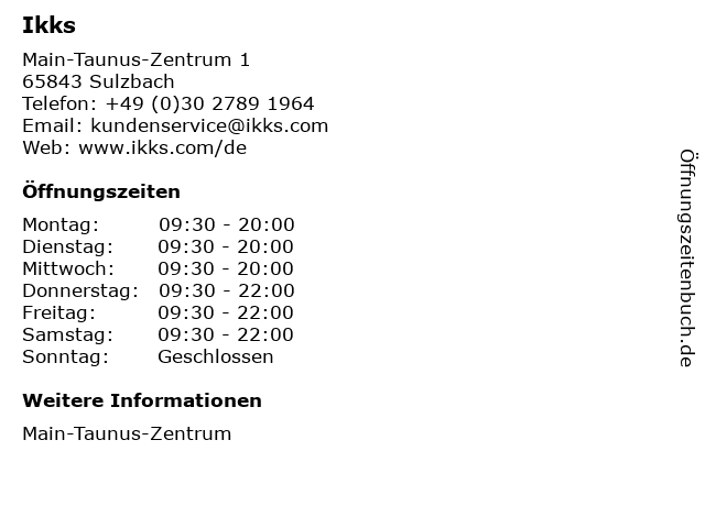 | Öffnungszeiten Ikks in Sulzbach anzeigen | |