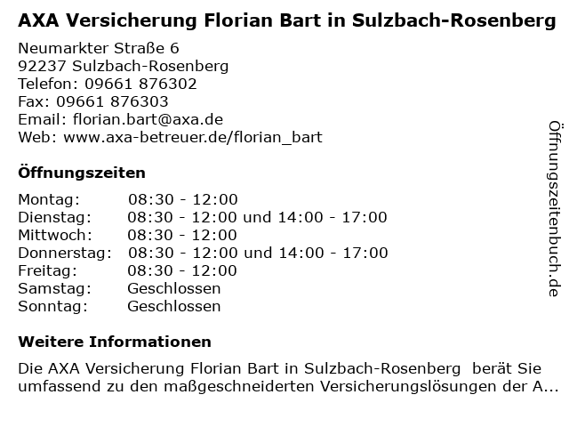 Branchen & Suchbegriffe zu AXA Versicherung Florian Bart in Sulzbach-Rosenberg:altersvorsorge, autoversicherung, axa, bart, berufshaftpflichtversicherung, florian, gebäude- und hausratsversicherung, kfz-versicherung (motorrad), lebensversicherung, rosenberg, unternehmen für versicherungsfachfragen, versicherung, zahnmedizinische versicherung |