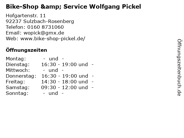 Öffnungszeiten Bike-Shop & Service Wolfgang Pickel