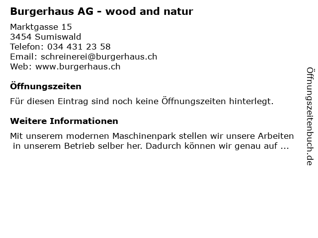 | Burgerhaus AG - wood and natur anrufen | |