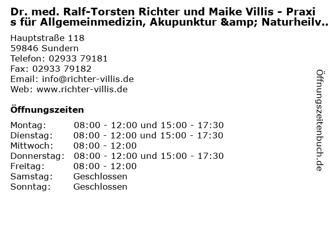 Branchen & Suchbegriffe zu Dr. med. Ralf-Torsten Richter und Maike Villis - Praxis für Allgemeinmedizin, Akupunktur & Naturheilverfahren - Sprechstunden:akupunktur, allgemeinmedizin, arzt, dr., facharzt, maike, med., mediziner, naturheilverfahren, praxis, ralf, richter, sprechstunden, torsten, villis |