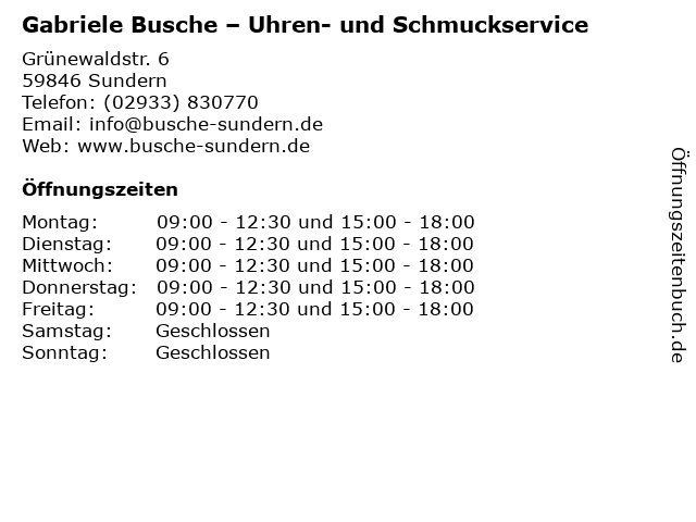 Branchen & Suchbegriffe zu Gabriele Busche – Uhren- und Schmuckservice:busche, gabriele, schmuckservice, uhren, uhren-, – |