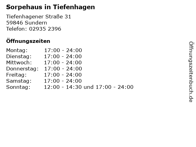 | Öffnungszeiten Sorpehaus in Tiefenhagen in Sundern anzeigen | |