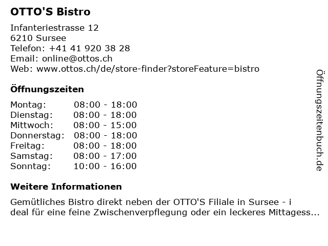 | Öffnungszeiten OTTO'S Bistro in Sursee anzeigen | |