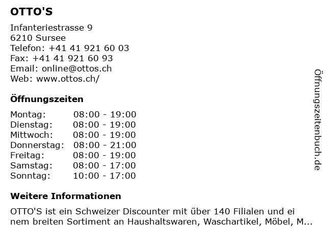 | Öffnungszeiten OTTO'S in Sursee anzeigen | |